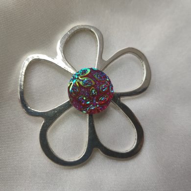 Broche aimantée « Duo fleurs relief argenté doré nacre »